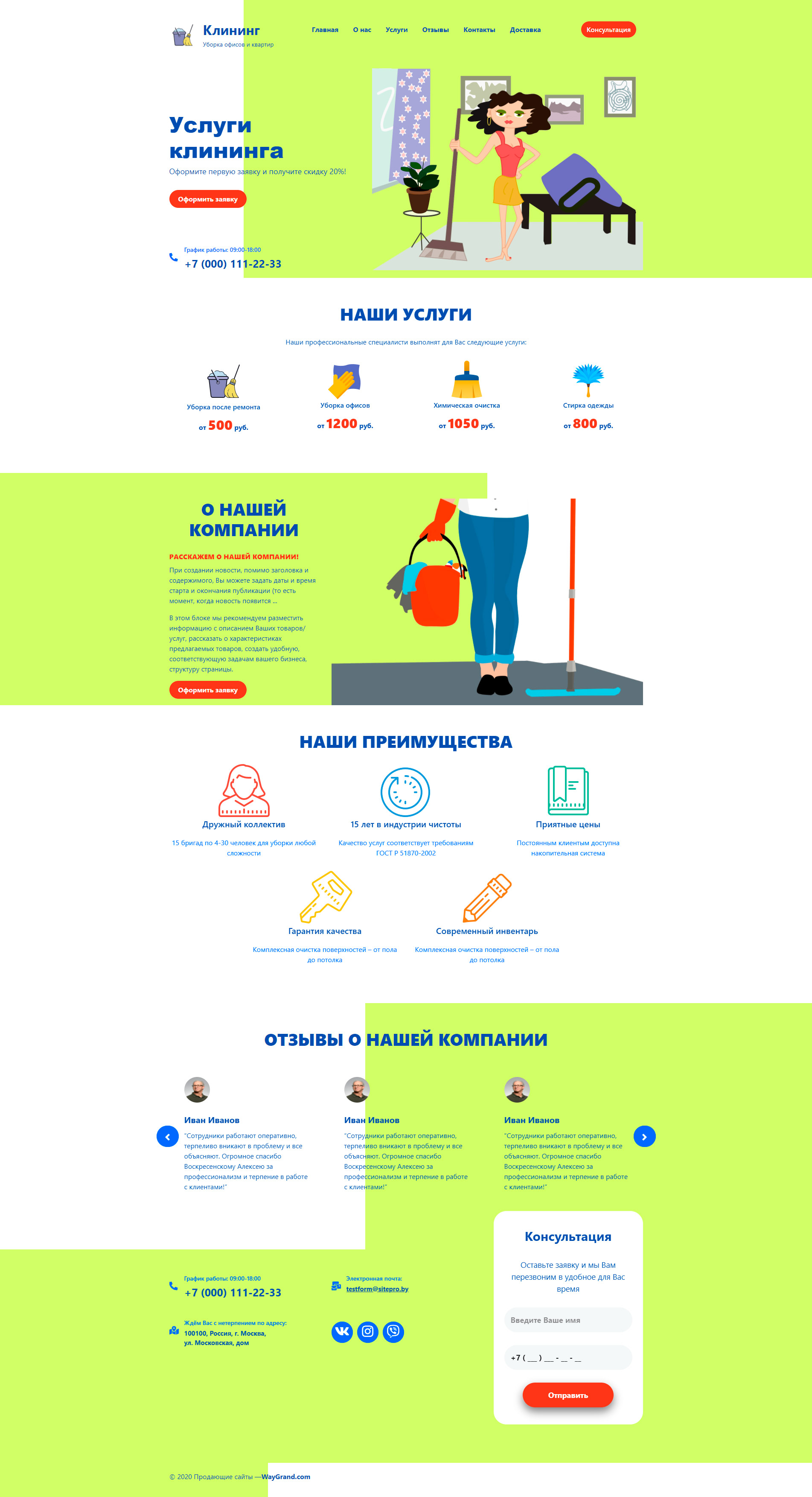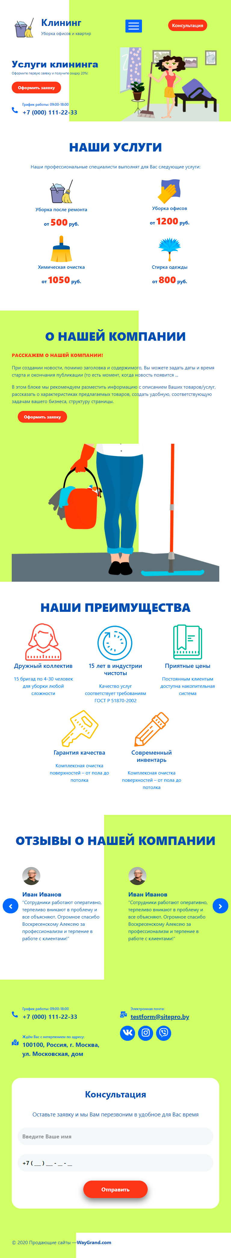 Закажите готовый продающий сайт лендинг #0628202 в Астрахани за 1-3 дня «под ключ»: свёрстан, отрисован и готов к рекламе. Тематика шаблона «Услуги клининга».