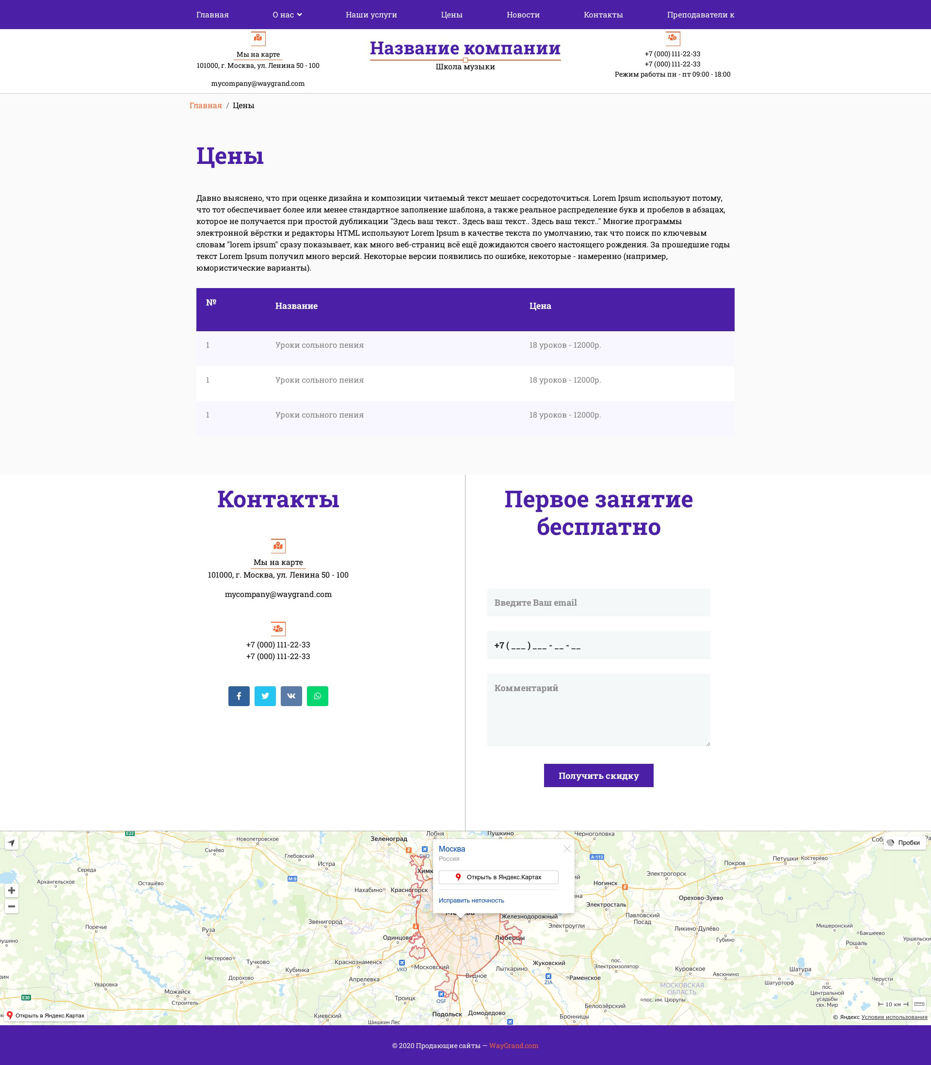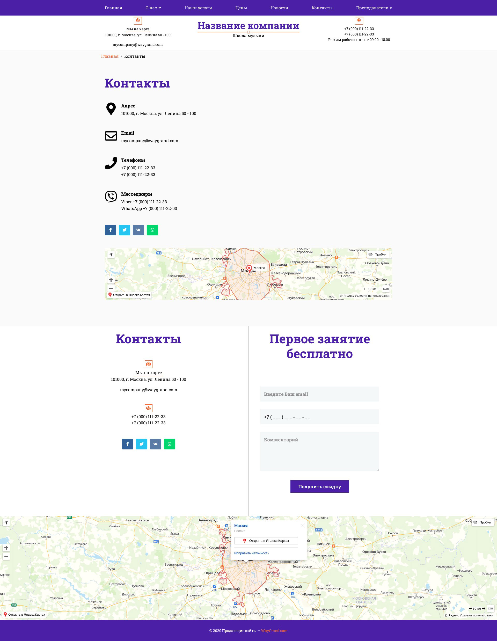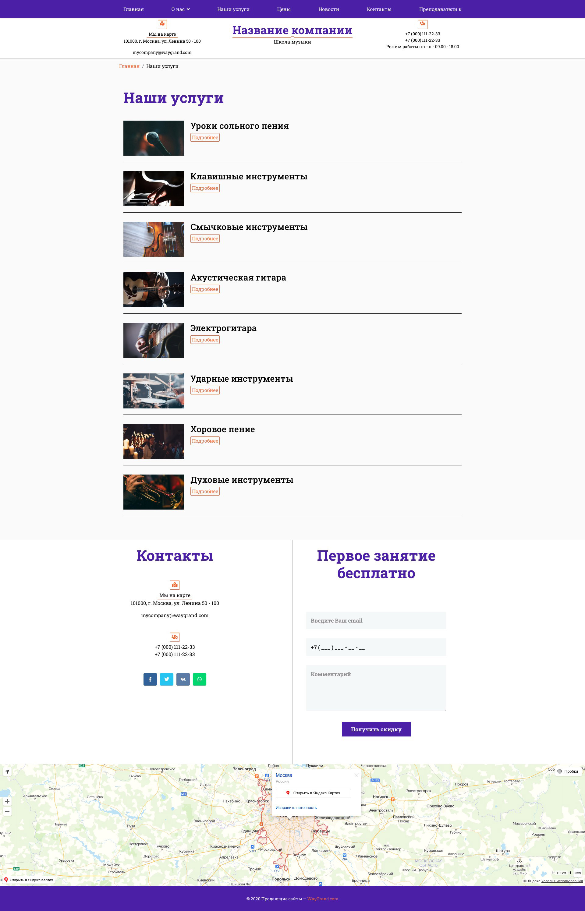 Закажите готовый продающий сайт визитка #1431301 в Астрахани за 5-7 дня «под ключ»: свёрстан, отрисован и готов к рекламе. Тематика шаблона «Школа музыки».
