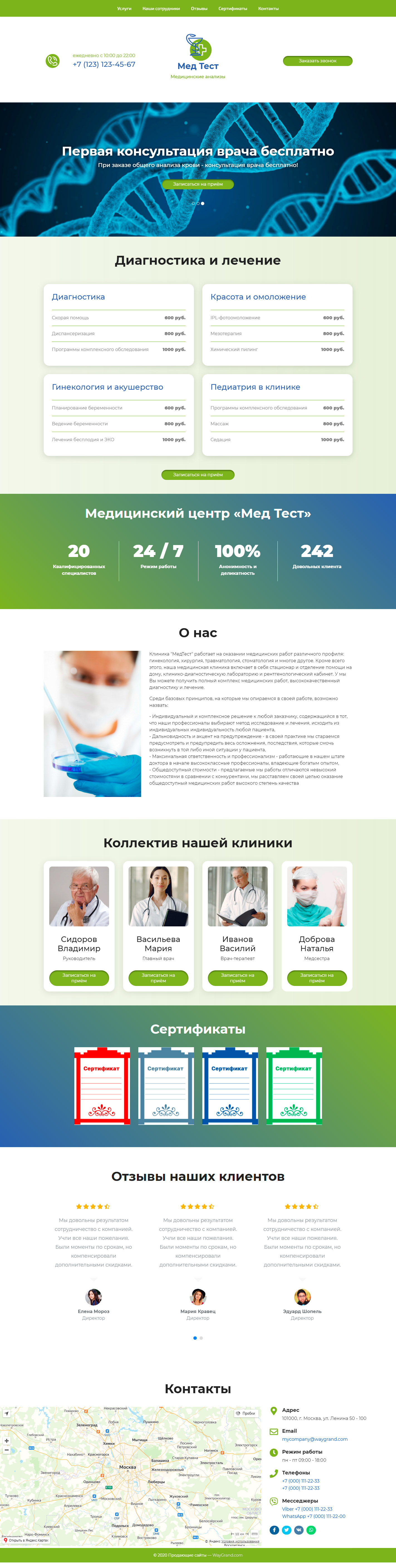 Закажите готовый продающий сайт лендинг #1025201 в Астрахани за 1-3 дня «под ключ»: свёрстан, отрисован и готов к рекламе. Тематика шаблона «Медицинские анализы».