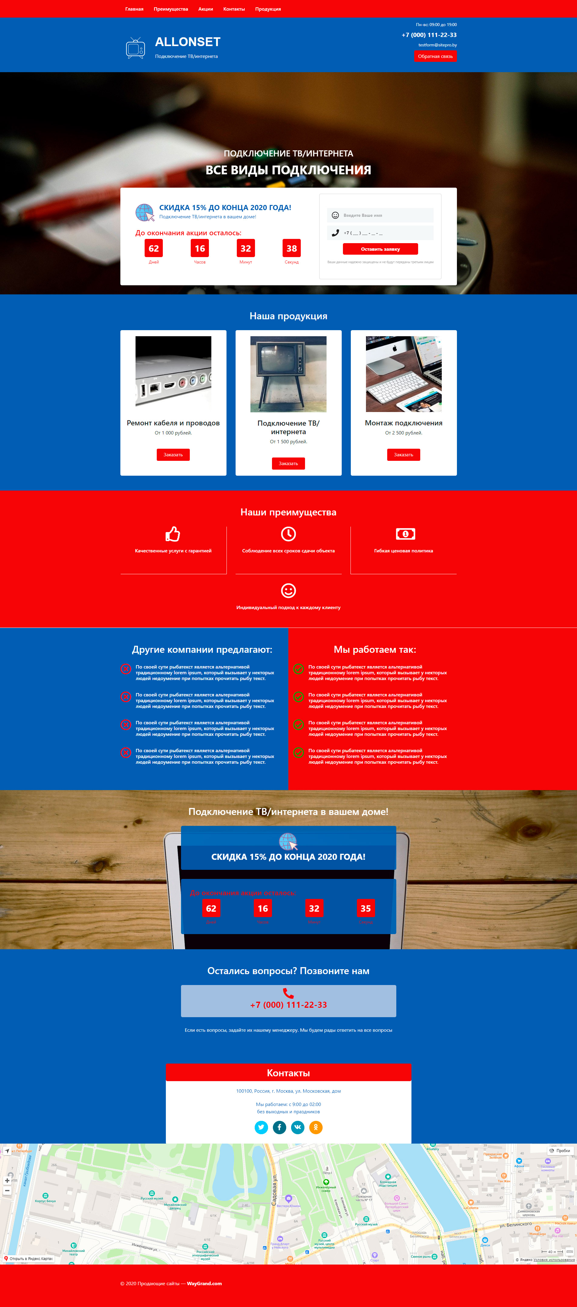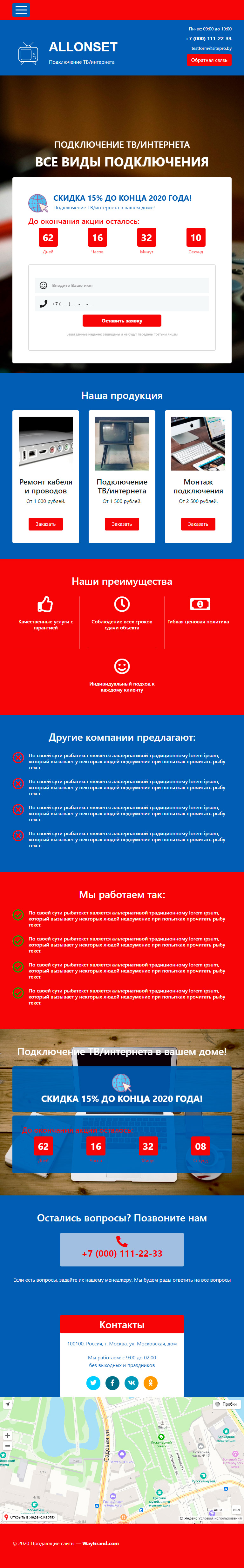 Закажите готовый продающий сайт лендинг #0718201 в Астрахани за 1-3 дня «под ключ»: свёрстан, отрисован и готов к рекламе. Тематика шаблона «Подключение ТВ/интернета».