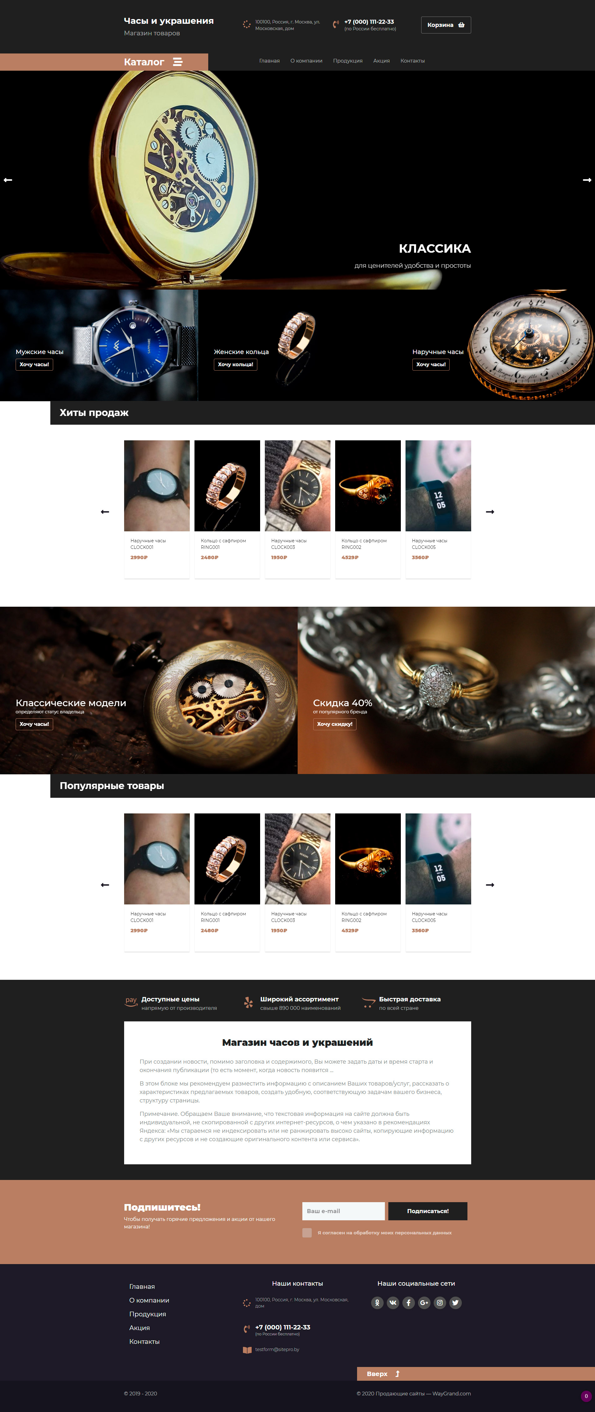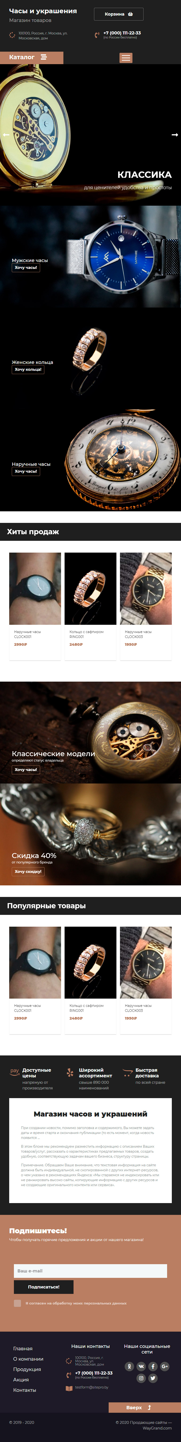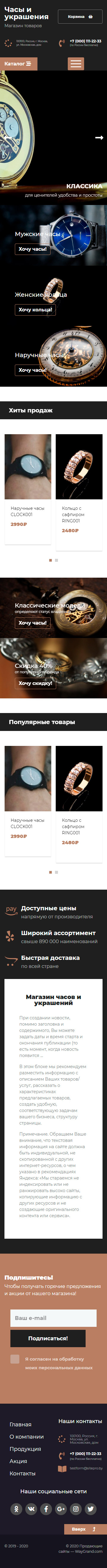 Закажите готовый продающий сайт лендинг #2437201 в Астрахани за 1-3 дня «под ключ»: свёрстан, отрисован и готов к рекламе. Тематика шаблона «Часы и украшения».