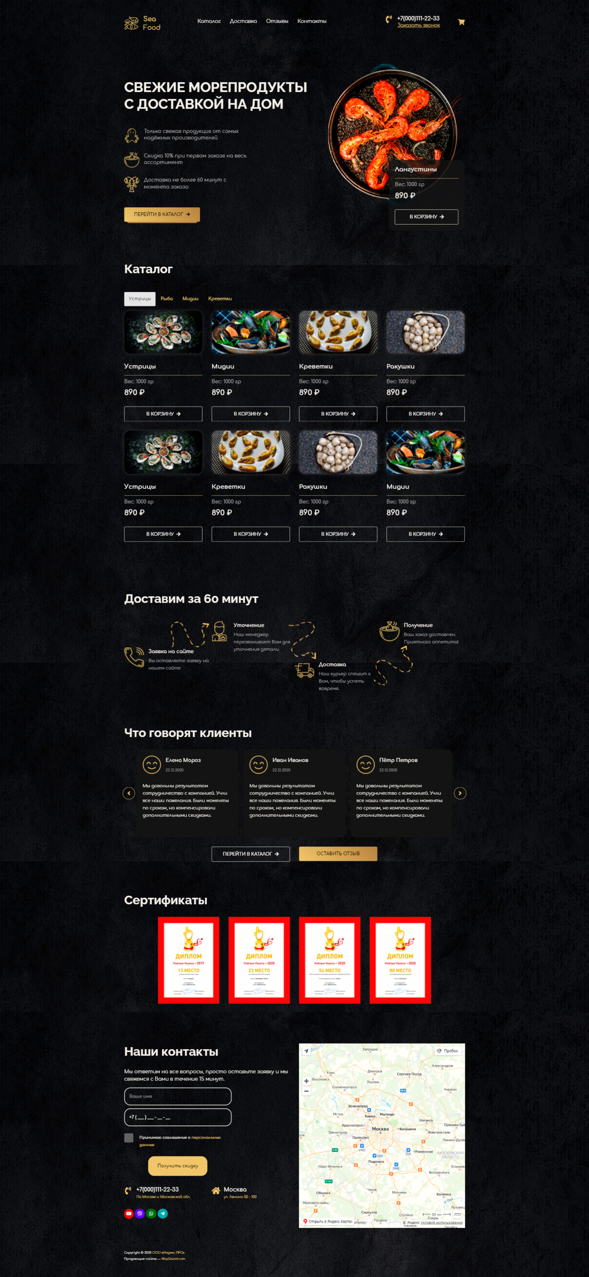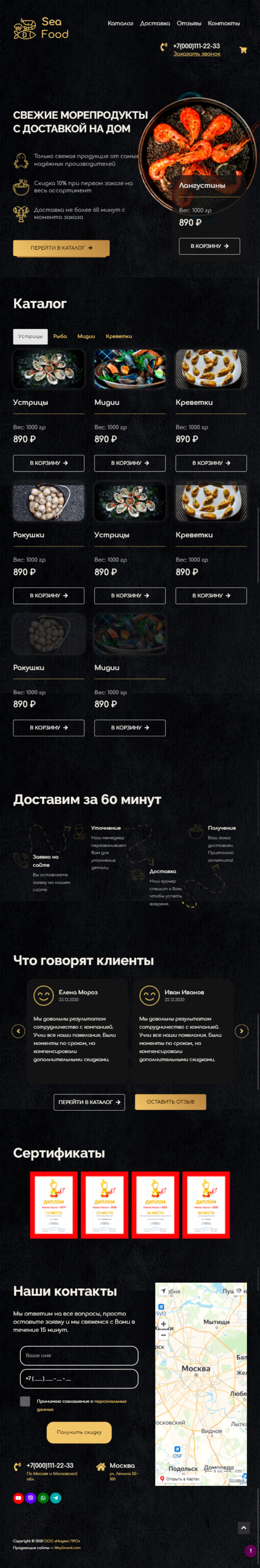 Закажите готовый продающий сайт лендинг #0422205 в Астрахани за 1-3 дня «под ключ»: свёрстан, отрисован и готов к рекламе. Тематика шаблона «Доставка морепродуктов на дом».