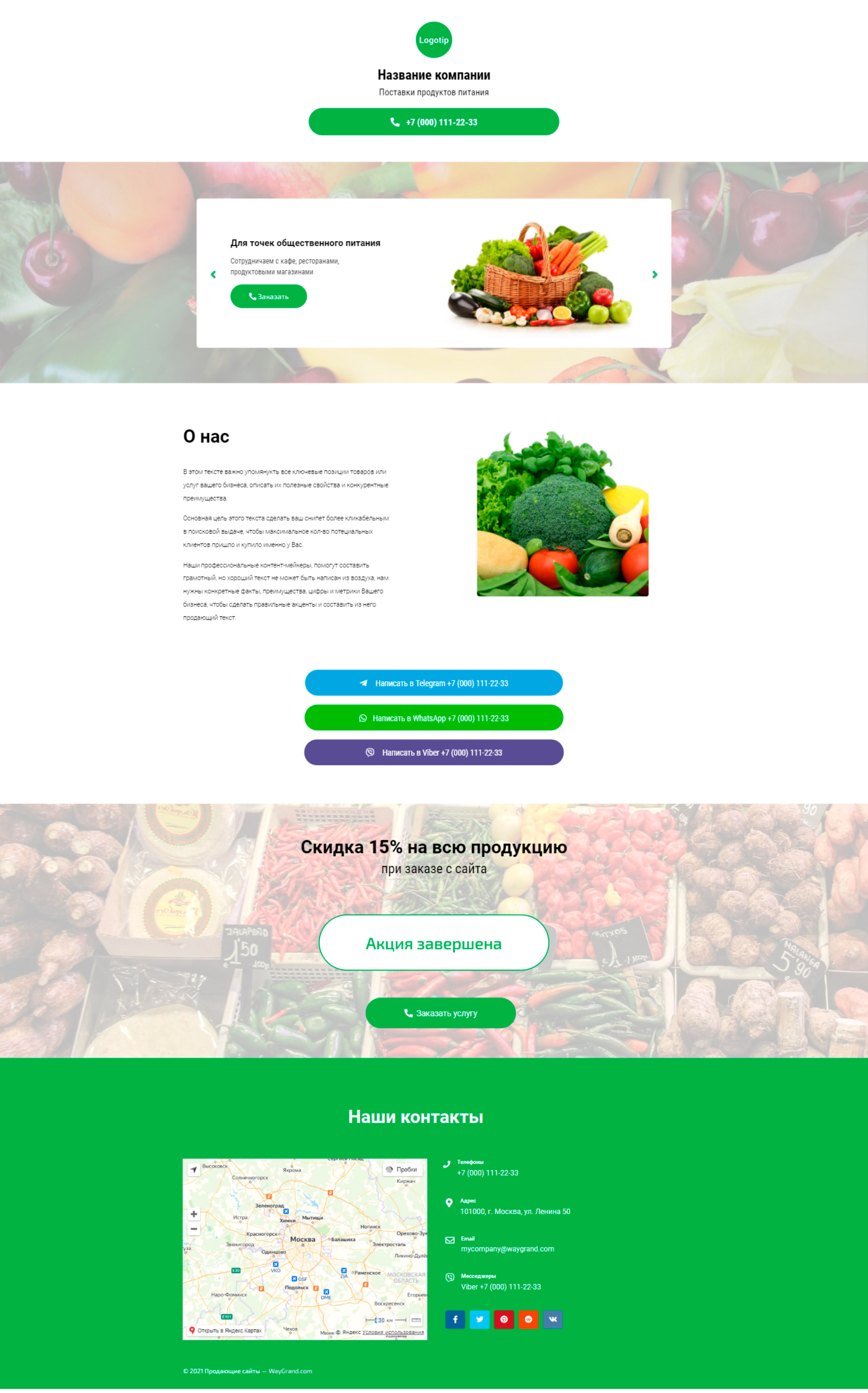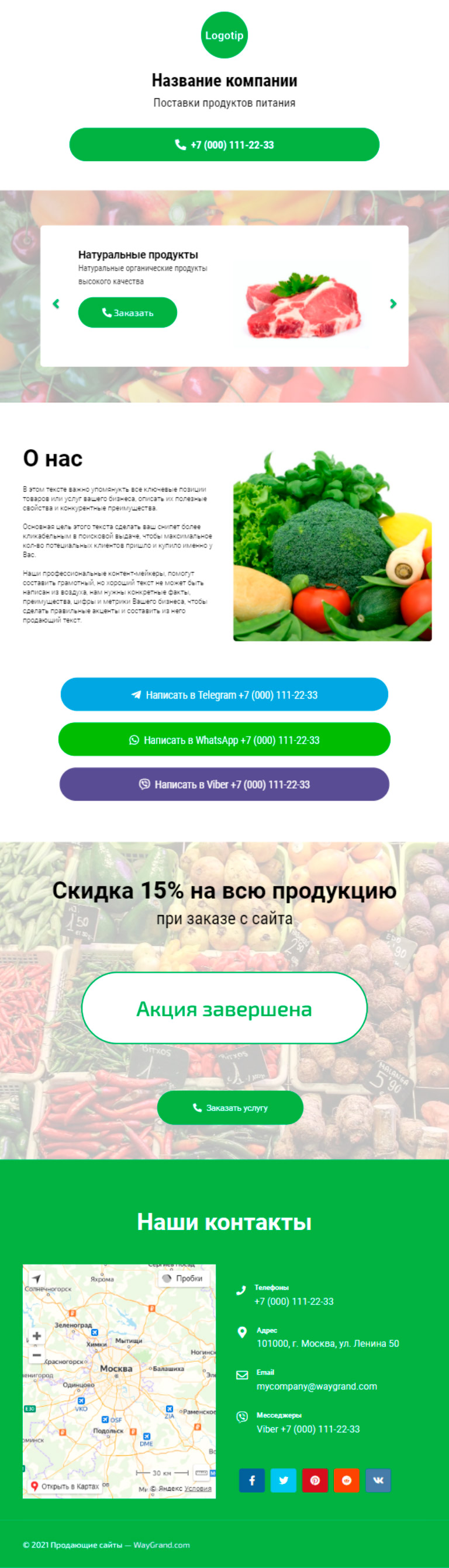 Закажите готовый продающий сайт визитка #1723101 в Астрахани за 5-7 дня «под ключ»: свёрстан, отрисован и готов к рекламе. Тематика шаблона «Поставки продуктов питания».