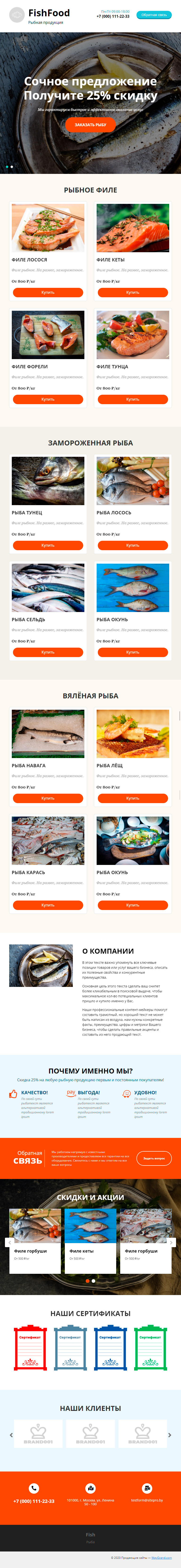 Закажите готовый продающий сайт лендинг #1731201 в Астрахани за 1-3 дня «под ключ»: свёрстан, отрисован и готов к рекламе. Тематика шаблона «Рыбная продукция».
