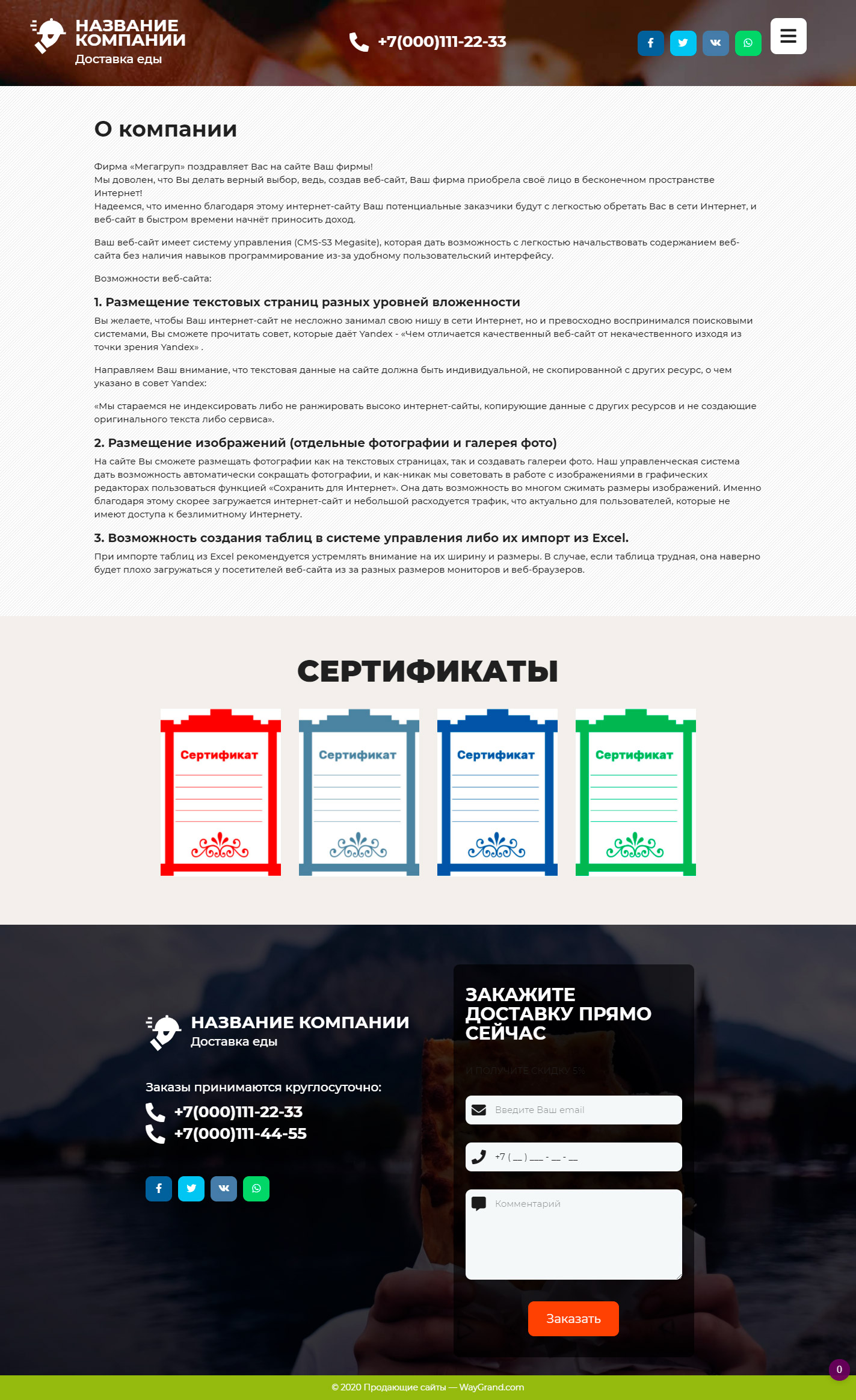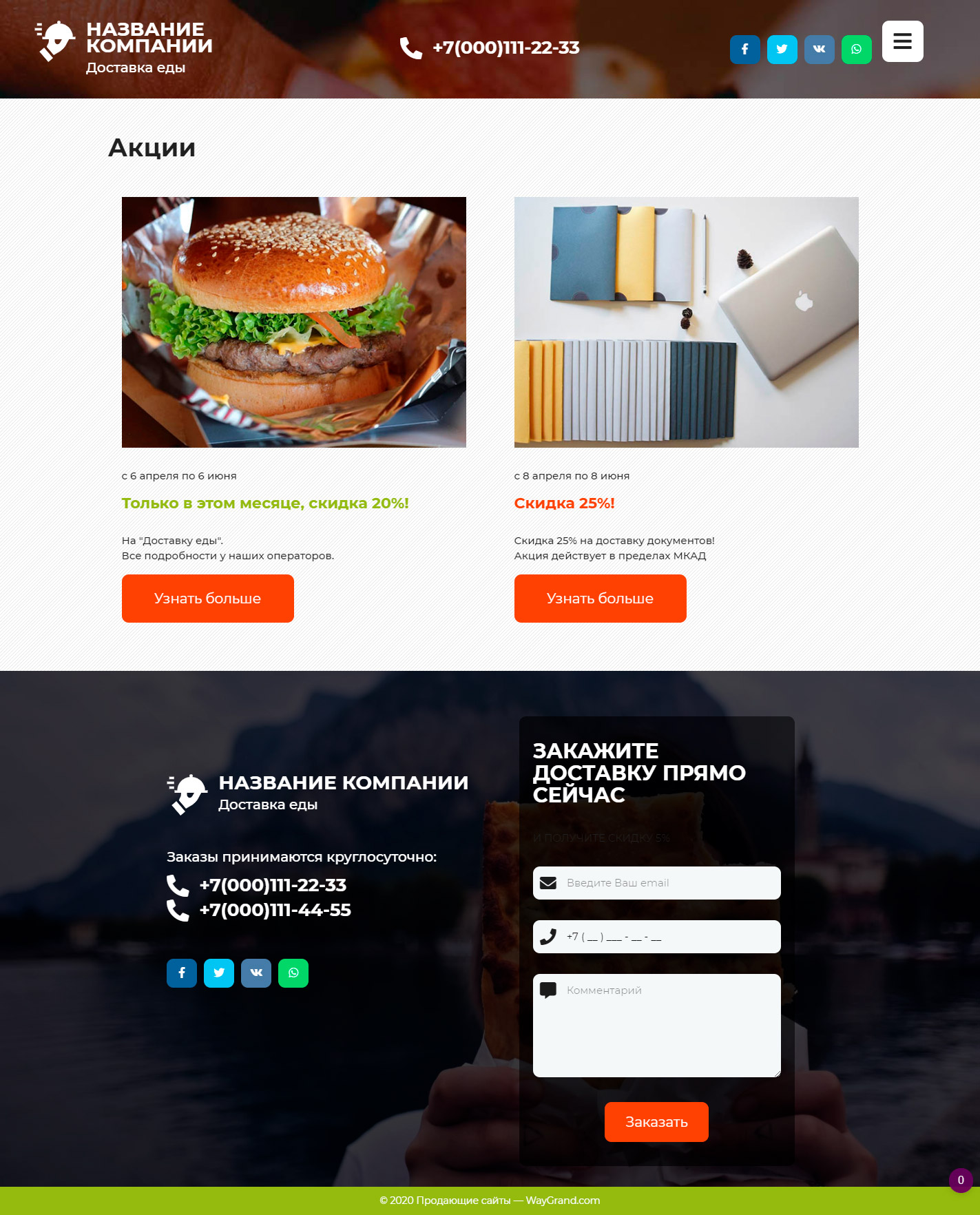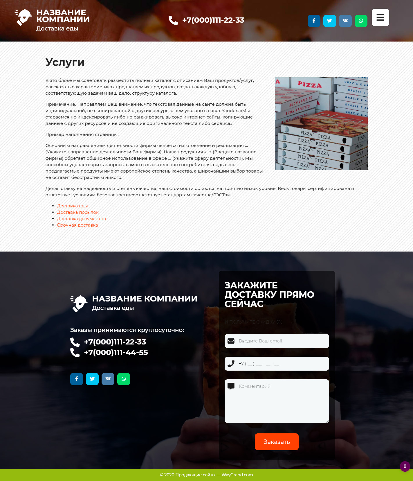Готовый сайт визитка Курьерская доставка еды #3071302 — Купить на WayGrand.com в Астрахани