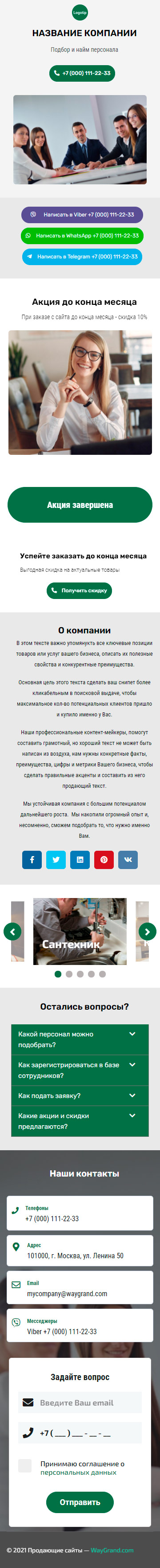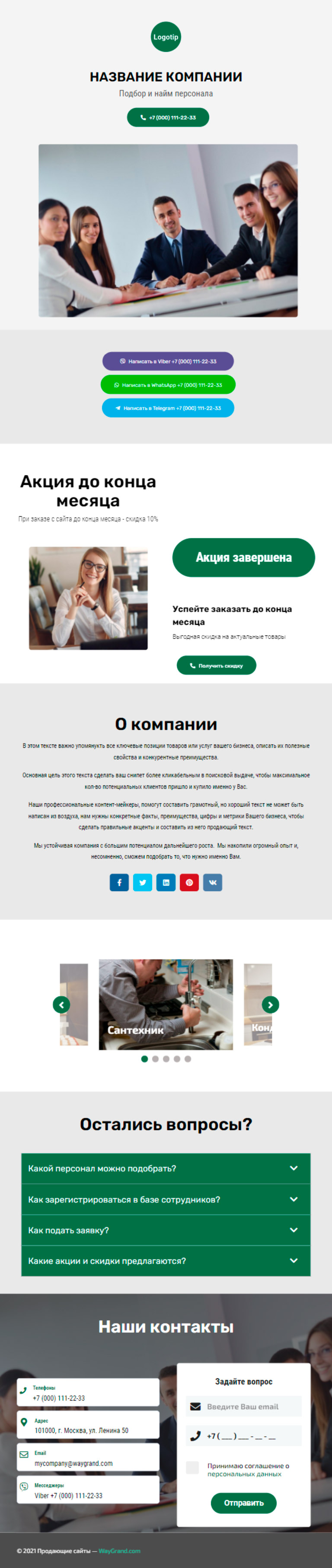 Закажите готовый продающий сайт визитка #1415101 в Астрахани за 5-7 дня «под ключ»: свёрстан, отрисован и готов к рекламе. Тематика шаблона «Подбор и найм персонала».