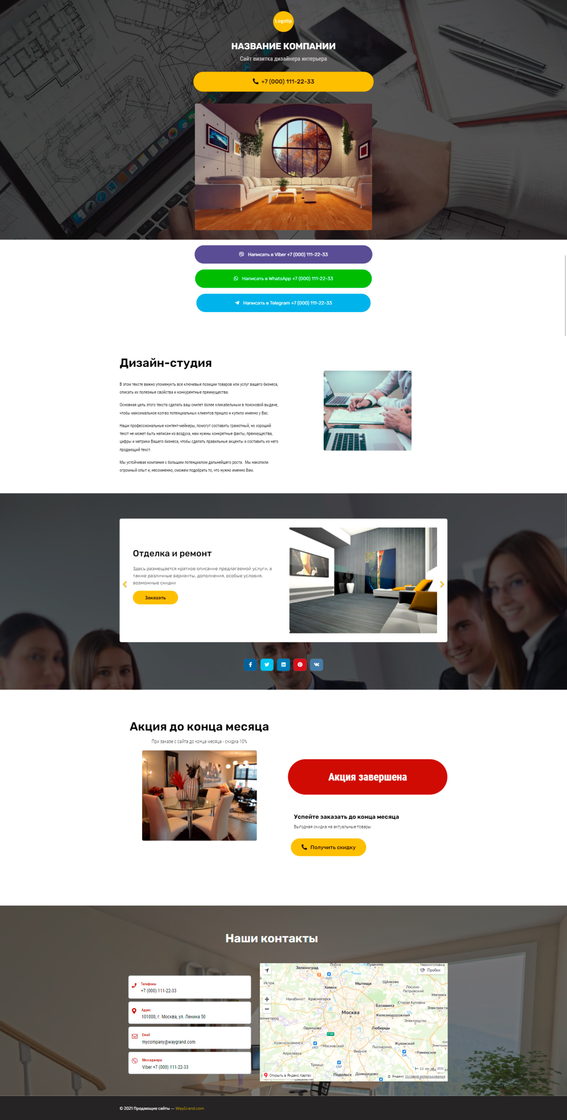 Закажите готовый продающий сайт визитка #2124101 в Астрахани за 5-7 дня «под ключ»: свёрстан, отрисован и готов к рекламе. Тематика шаблона «Дизайн интерьеров».