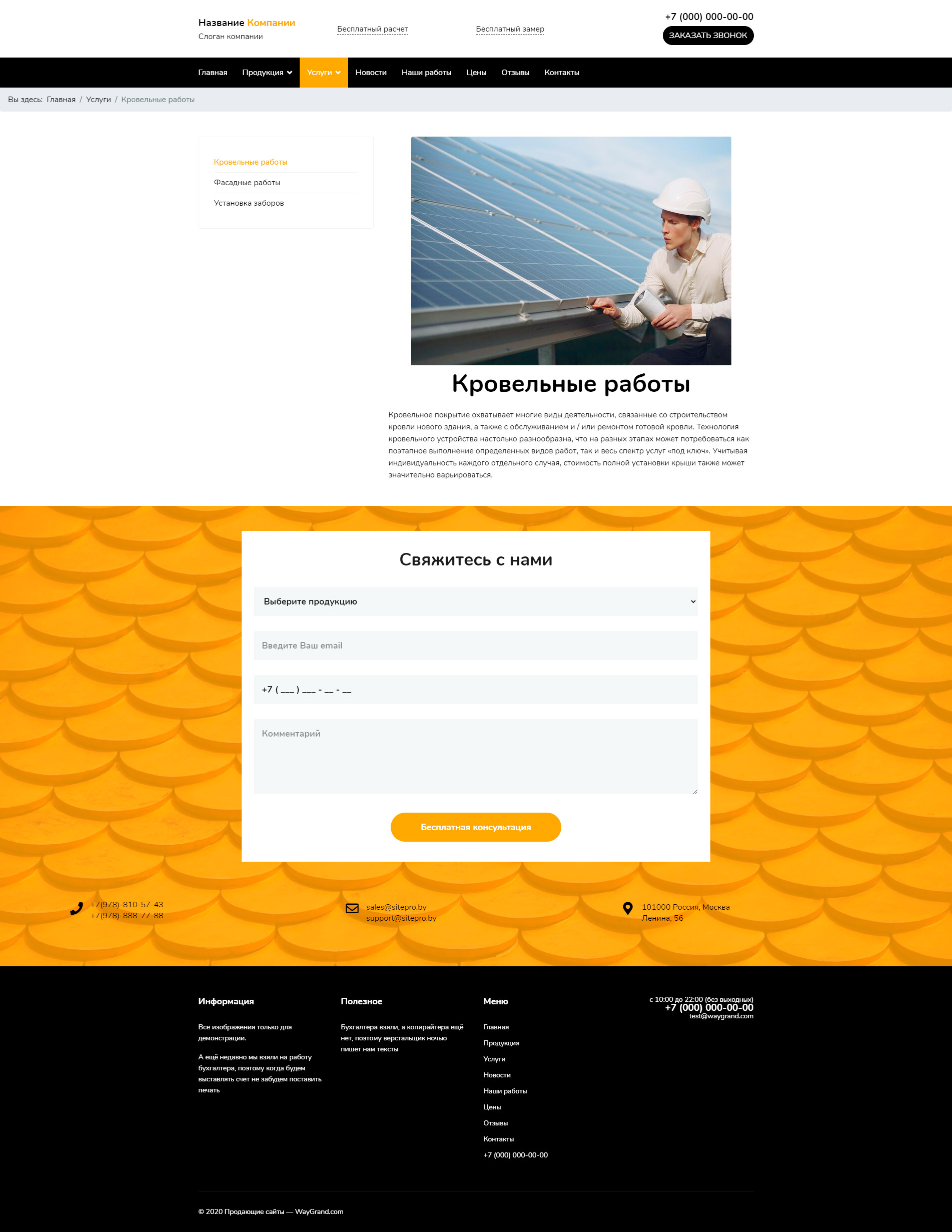 Закажите готовый продающий сайт визитка #2132301 в Астрахани за 5-7 дня «под ключ»: свёрстан, отрисован и готов к рекламе. Тематика шаблона «Заборы, кровля, фасады».