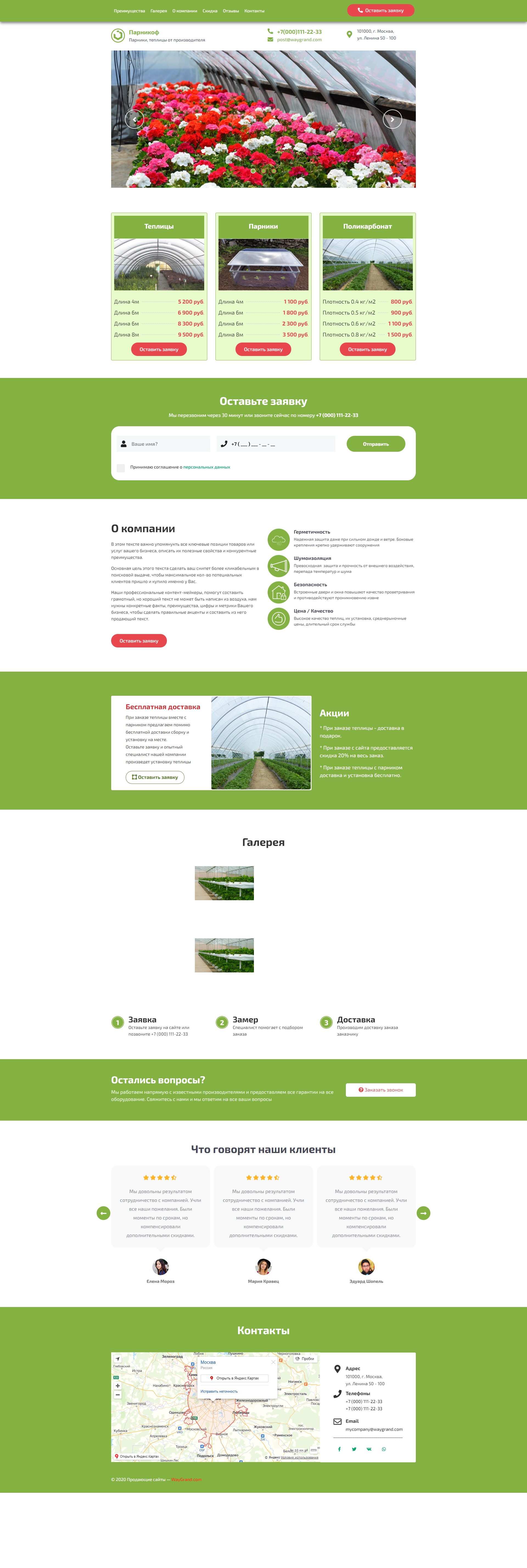Закажите готовый продающий сайт лендинг #2624202 в Астрахани за 1-3 дня «под ключ»: свёрстан, отрисован и готов к рекламе. Тематика шаблона «Парники и теплицы».