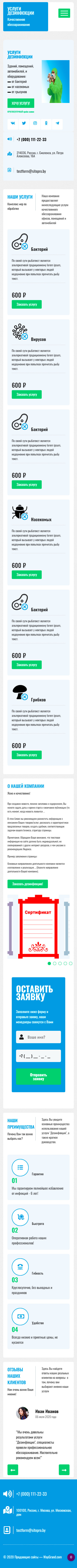 Закажите готовый продающий сайт лендинг #0608201 в Астрахани за 1-3 дня «под ключ»: свёрстан, отрисован и готов к рекламе. Тематика шаблона «Услуги дезинфекции».