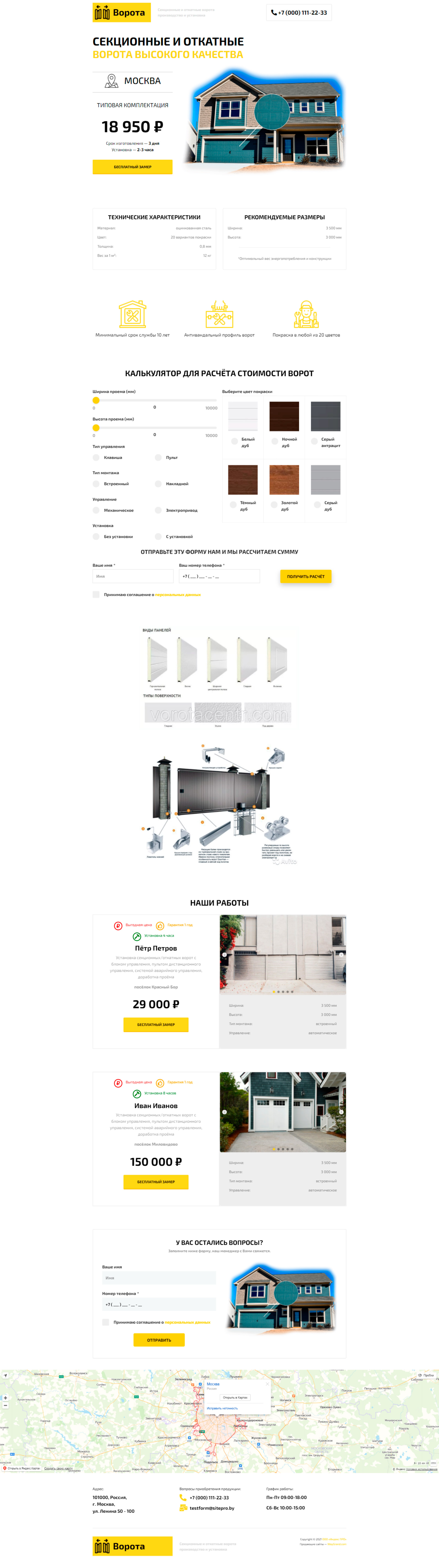 Закажите готовый продающий сайт лендинг #2001201 в Астрахани за 1-3 дня «под ключ»: свёрстан, отрисован и готов к рекламе. Тематика шаблона «Секционные и откатные ворота производство и установка».