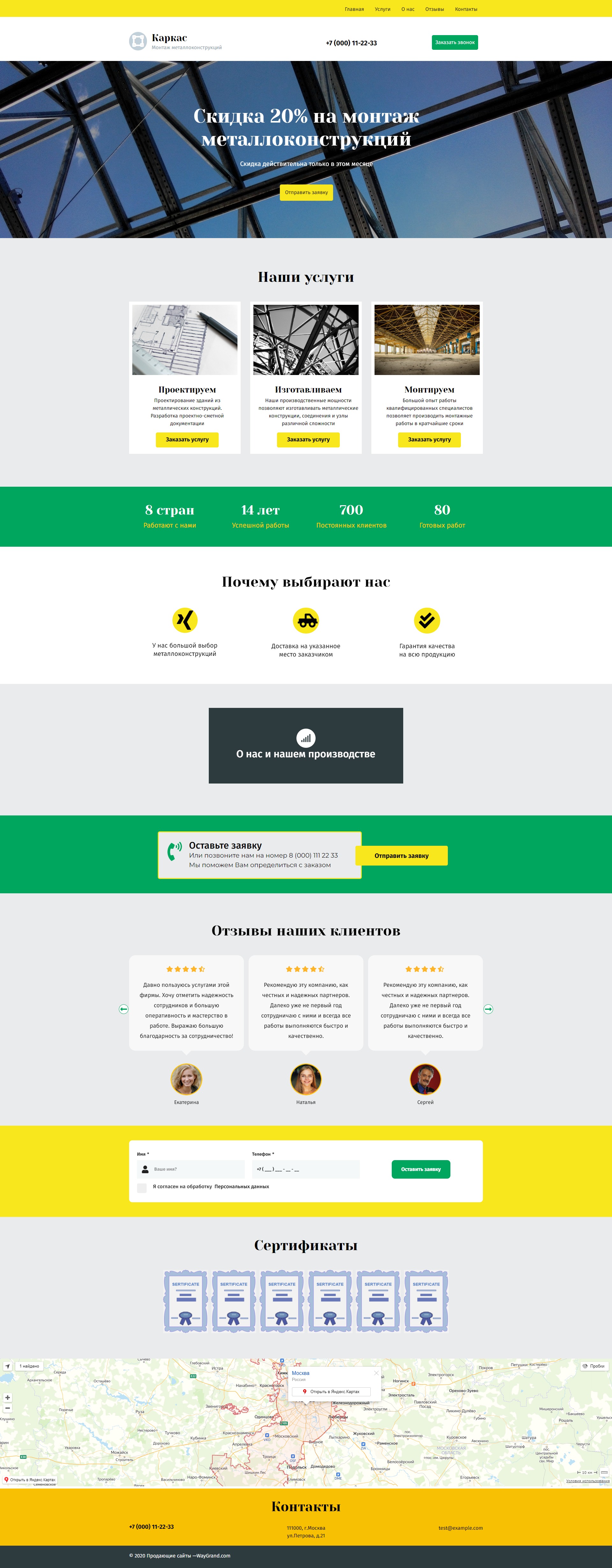 Закажите готовый продающий сайт лендинг #2027201 в Астрахани за 1-3 дня «под ключ»: свёрстан, отрисован и готов к рекламе. Тематика шаблона «Металлоконструкции».