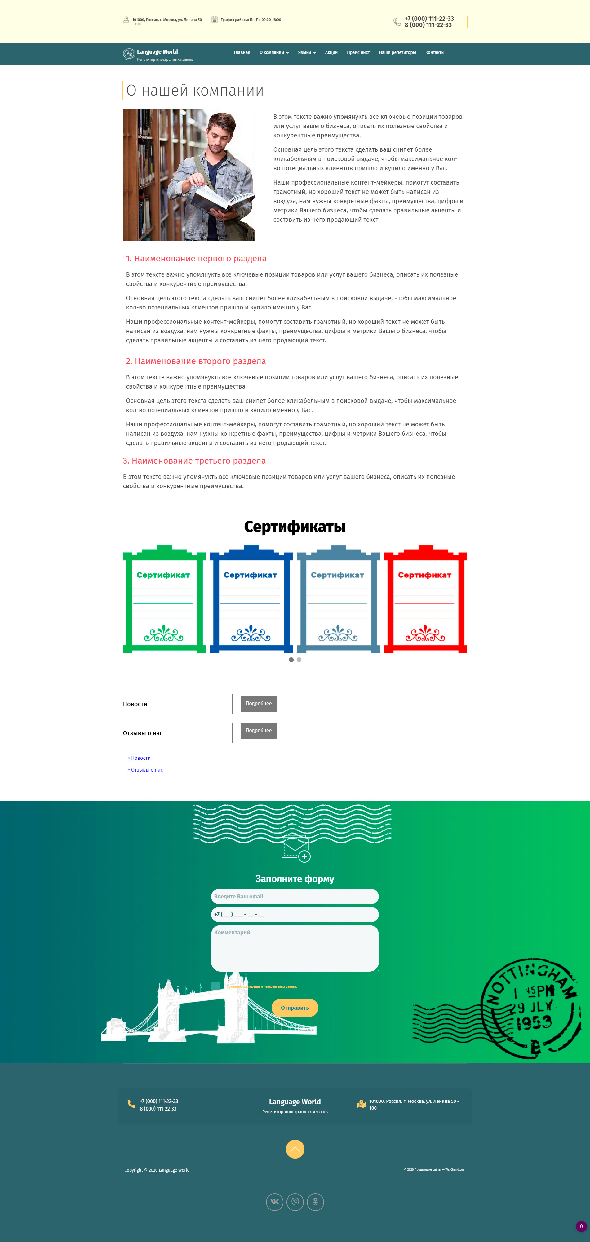 - Страница "О компании"