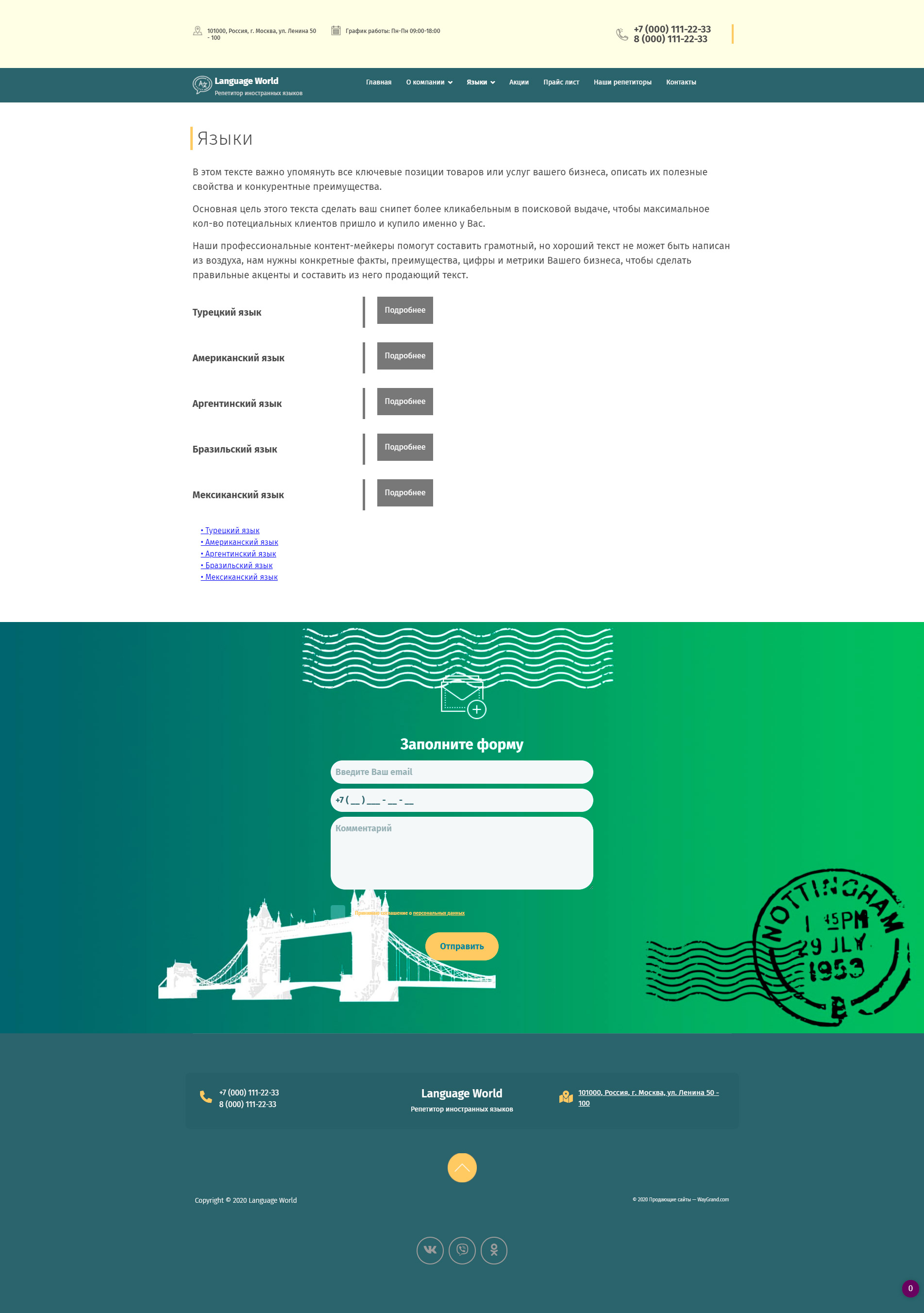 Закажите готовый продающий сайт визитка #1448302 в Астрахани за 5-7 дня «под ключ»: свёрстан, отрисован и готов к рекламе. Тематика шаблона «Репетитор иностранных языков».