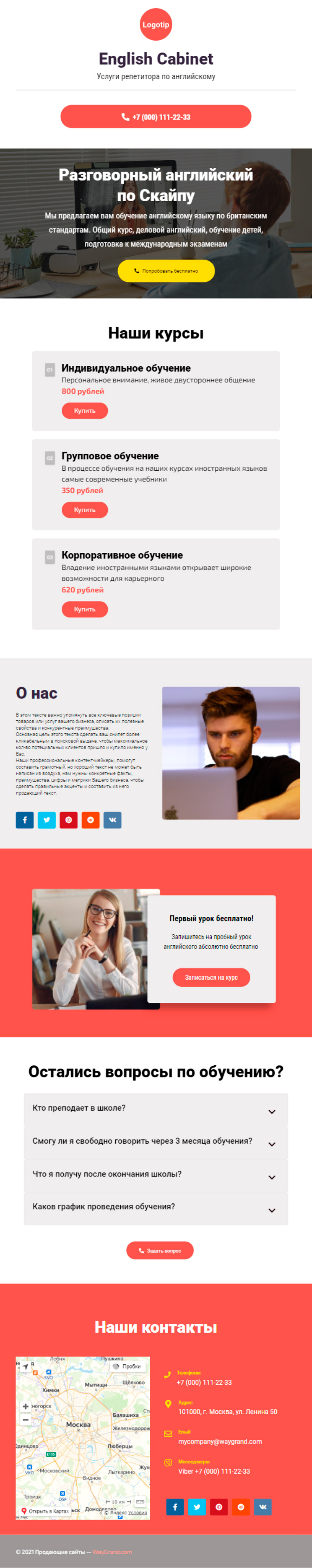 Закажите готовый продающий сайт визитка #1463101 в Астрахани за 5-7 дня «под ключ»: свёрстан, отрисован и готов к рекламе. Тематика шаблона «Услуги репетитора по английскому».