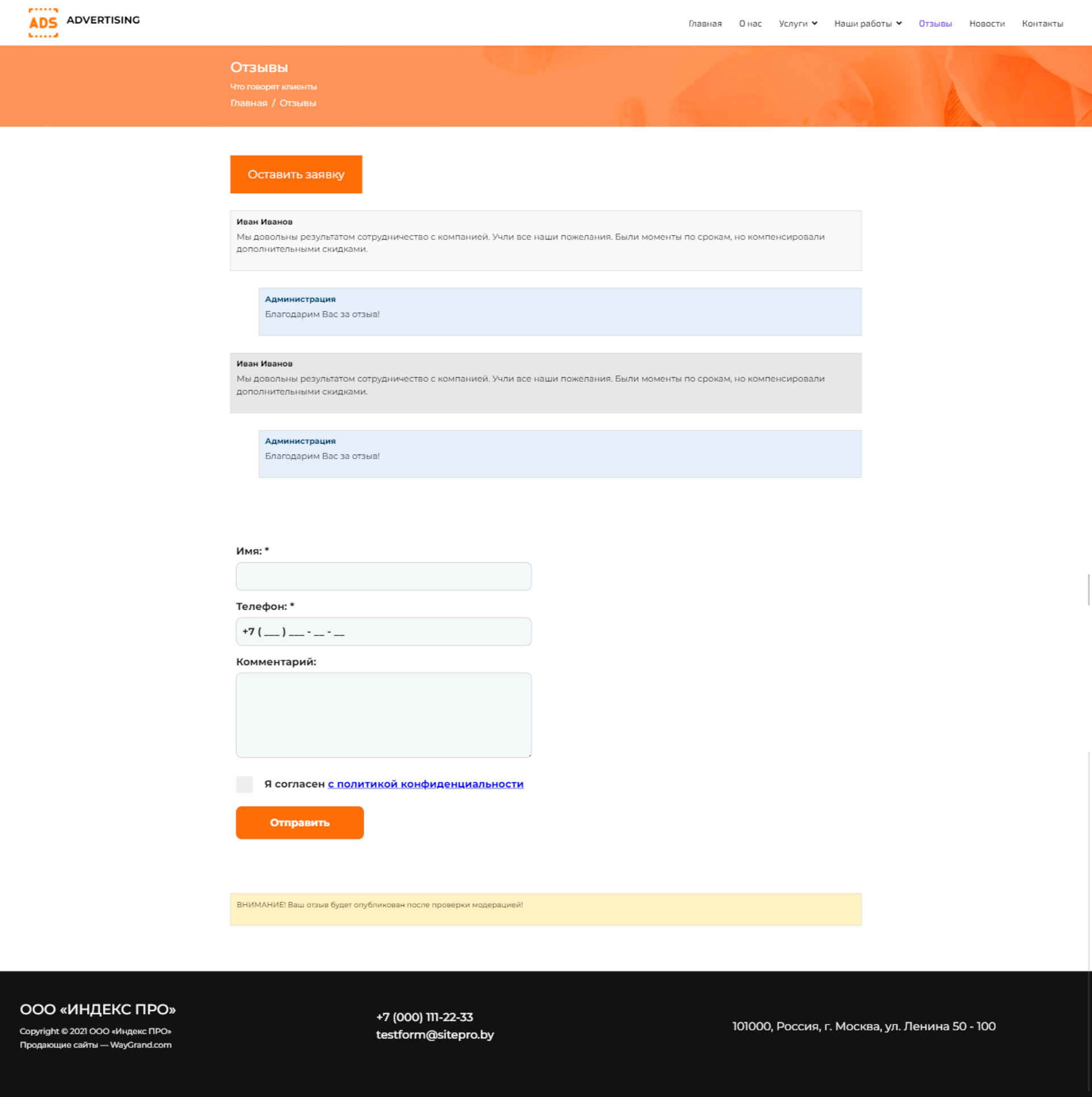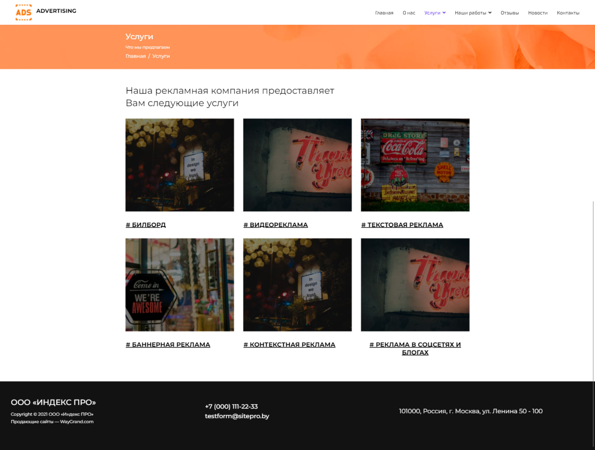 Закажите готовый продающий сайт визитка #1836301 в Астрахани за 5-7 дня «под ключ»: свёрстан, отрисован и готов к рекламе. Тематика шаблона «Рекламное агентство».
