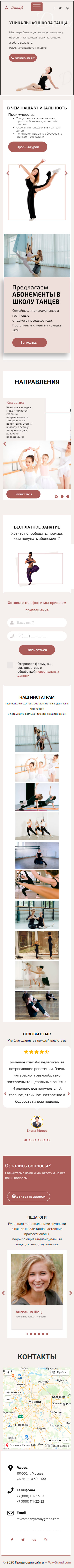 Закажите готовый продающий сайт лендинг #1923202 в Астрахани за 1-3 дня «под ключ»: свёрстан, отрисован и готов к рекламе. Тематика шаблона «Школа танцев».