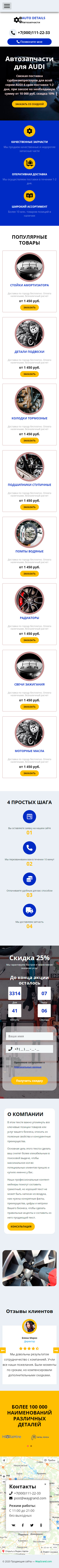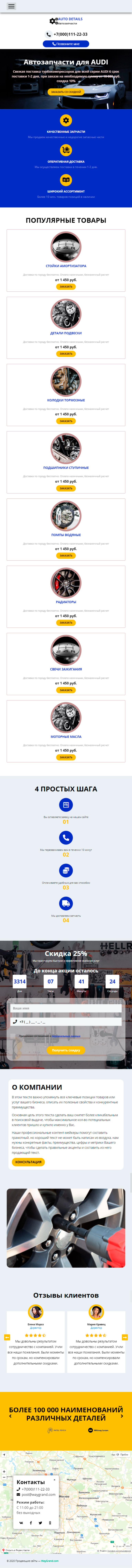 - Промоблок "Автозапчасти для AUDI" с кнопкой призыва к действию "Заказать со скидкой"