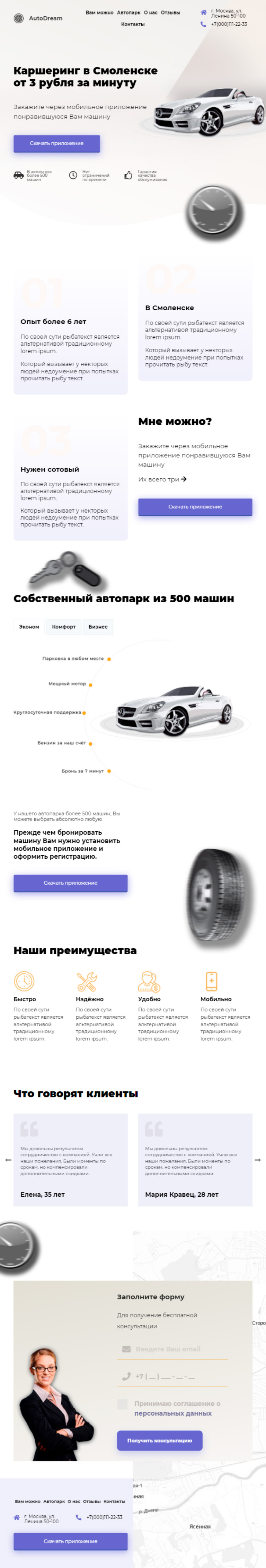 Закажите готовый продающий сайт лендинг #2545202 в Астрахани за 1-3 дня «под ключ»: свёрстан, отрисован и готов к рекламе. Тематика шаблона «Каршеринг».