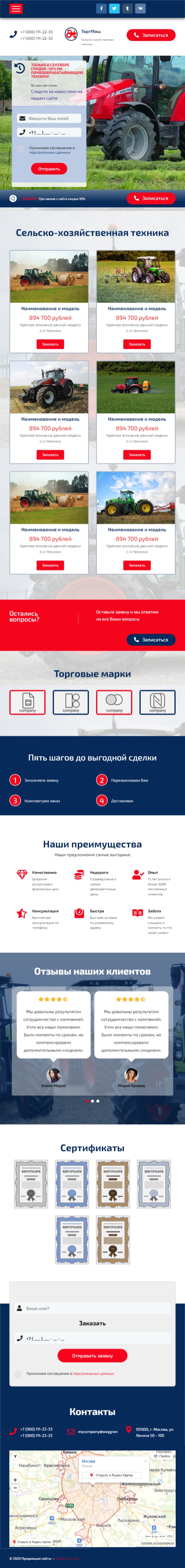Закажите готовый продающий сайт лендинг #2553202 в Астрахани за 1-3 дня «под ключ»: свёрстан, отрисован и готов к рекламе. Тематика шаблона «Сельско-хозяйственная техника».