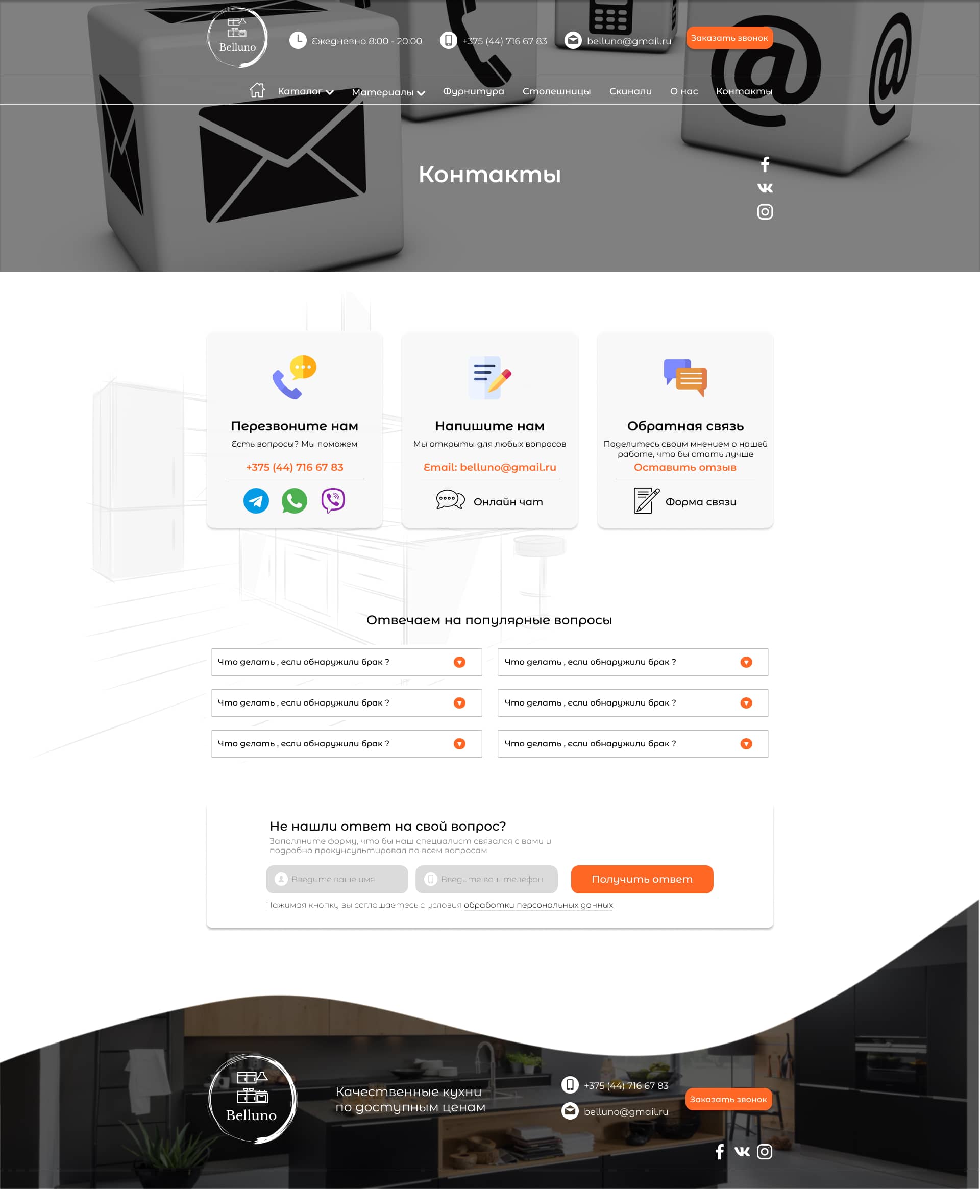 Закажите готовый продающий сайт визитка #282 в Астрахани за 5-7 дня «под ключ»: свёрстан, отрисован и готов к рекламе. Тематика шаблона «Кухни».