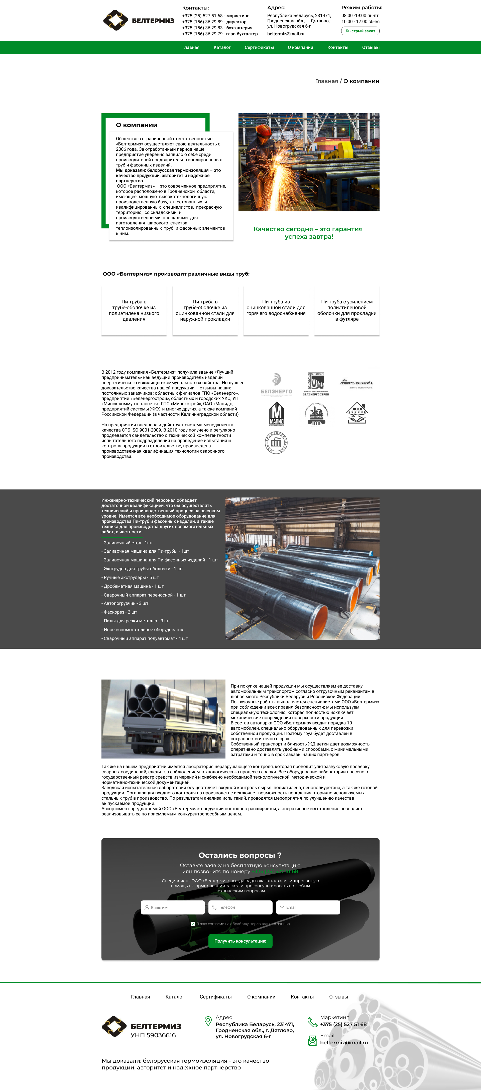 Закажите готовый продающий сайт визитка #141 в Астрахани за 5-7 дня «под ключ»: свёрстан, отрисован и готов к рекламе. Тематика шаблона «Производство ПИ-труб».